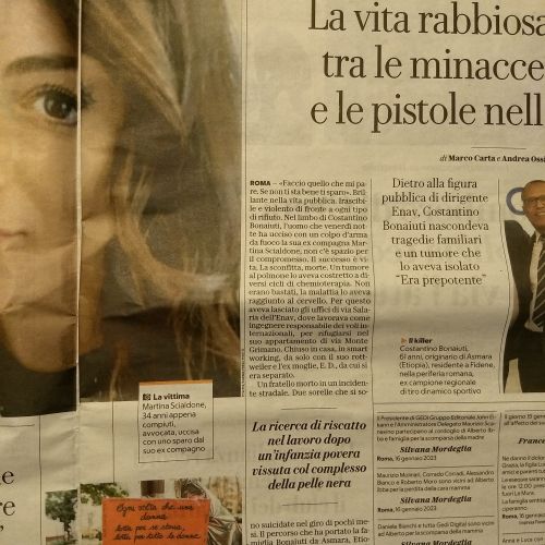 al centro della doppia pagina sull’uccisione di Martina Scialdone un sottotitolo sul “complesso del…