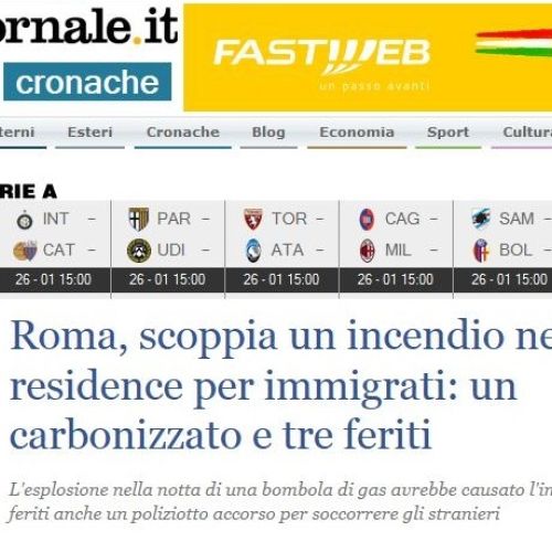 Roma, scoppia un incendio nel residence per immigrati: un carbonizzato e tre feriti