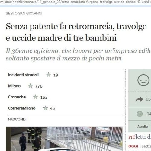 Senza patente fa retromarcia, travolge e uccide madre di tre bambini