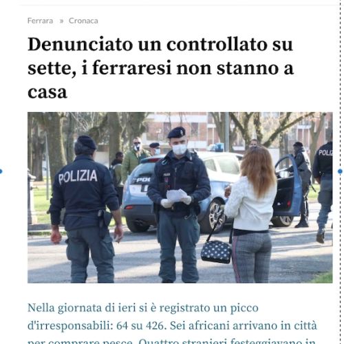 Dai giornali locali del 4 maggio: tre ragazzi sono multati perchè seduti su una panchina senza risp…