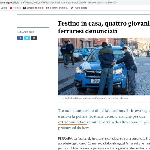una città sicura? (comunicato del 18-12-2020 di Cittadini del mondo e Associazione Nigeriani Ferrara)
