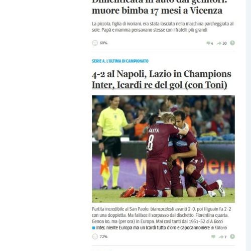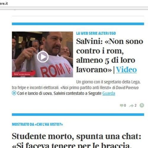Due tragedie sulla prima pagina online de Il Corriere della Sera, ma la nazionalità dei geni…