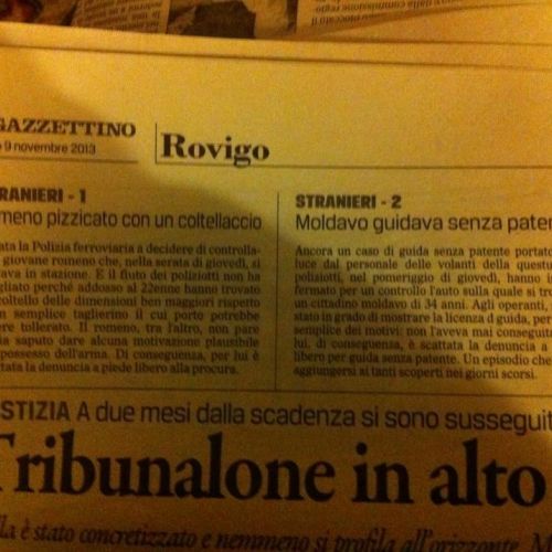 Stranieri 1: Romeno pizzicato con un coltellaccio Stranieri 2: Moldavo guidava senza patente